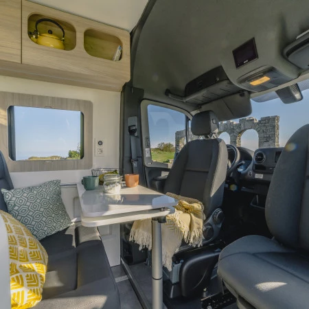 - Ventana abatible en zona de pasajeros con mosquitera y oscurecedor.